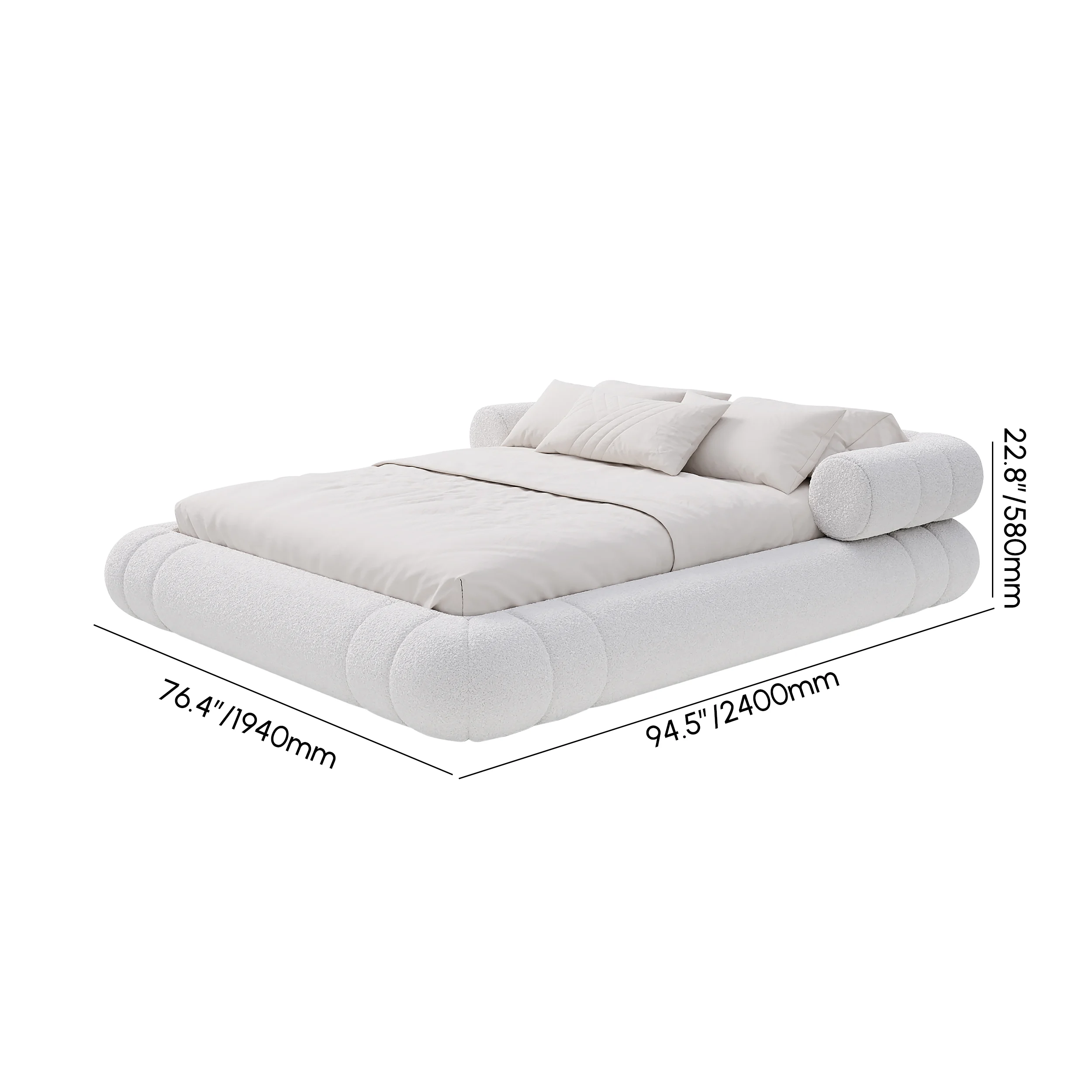 This boucle upholstered bed with a low-profile design adds a modern and minimalist touch to any bedroom, making it perfect for creating a cozy and inviting atmosphere. The soft, plush boucle fabric provides warmth without shedding for long-lasting comfort.
