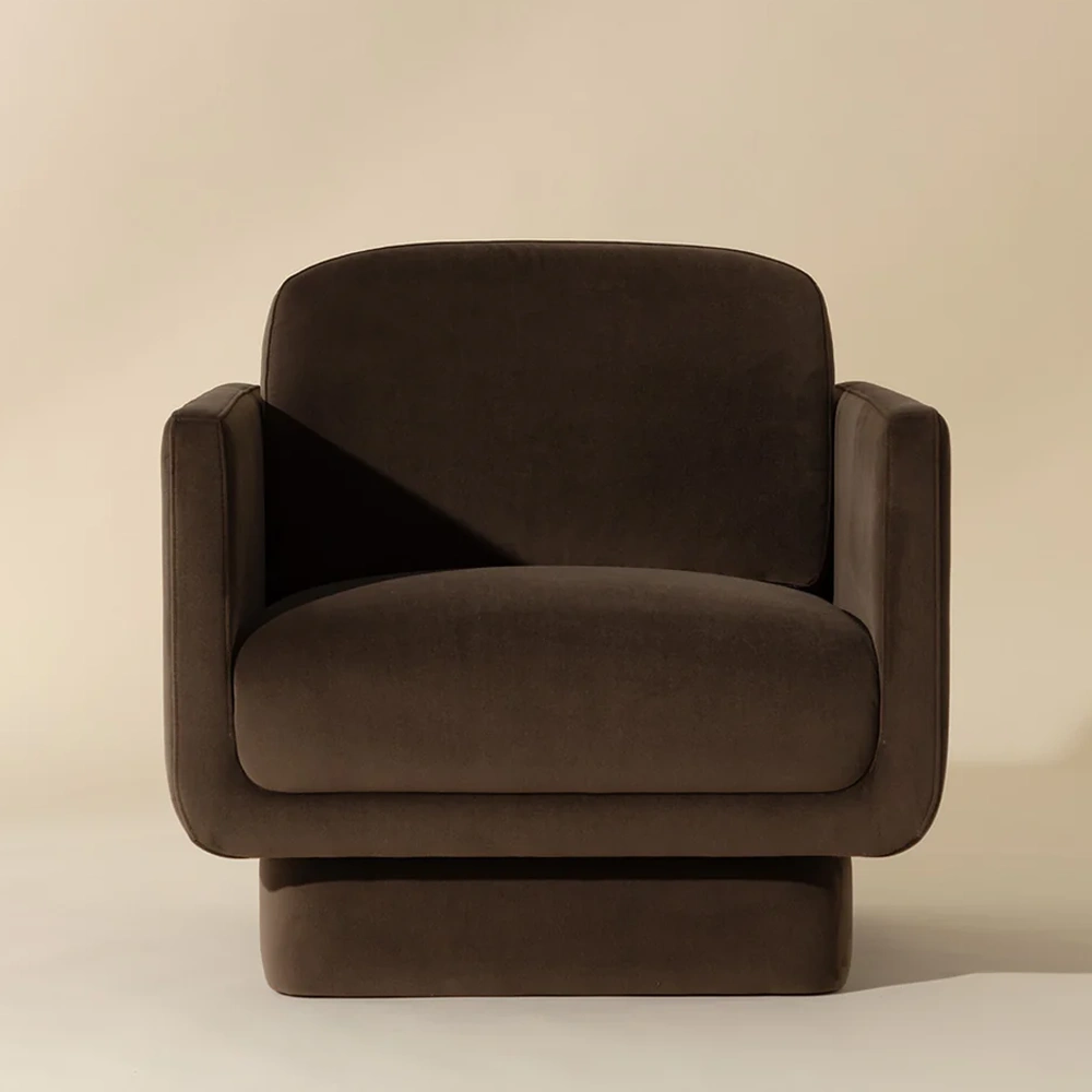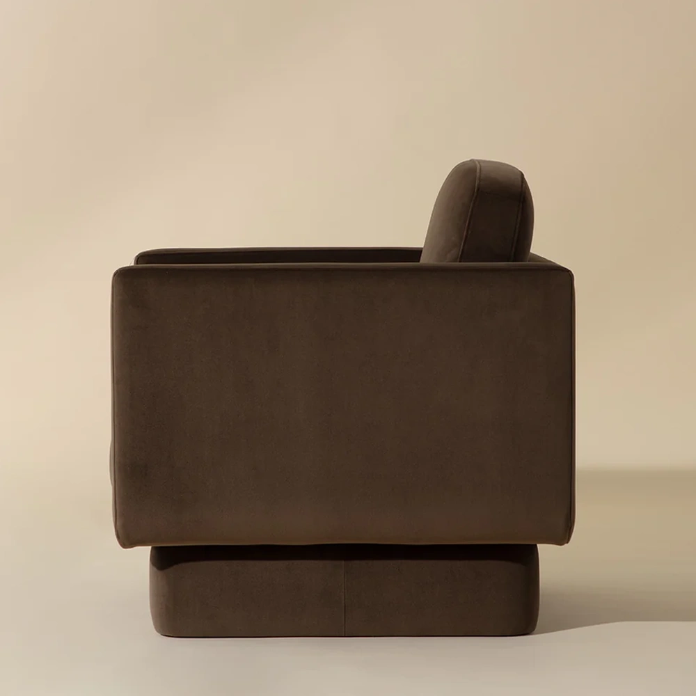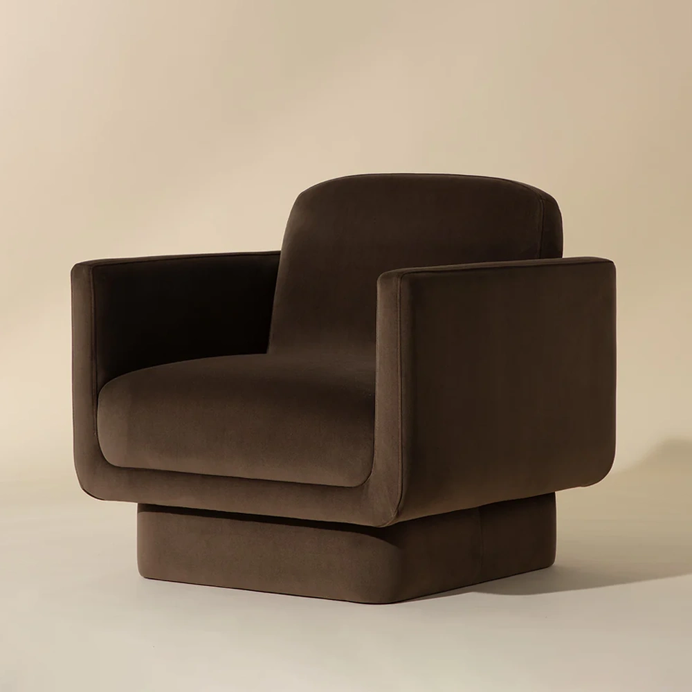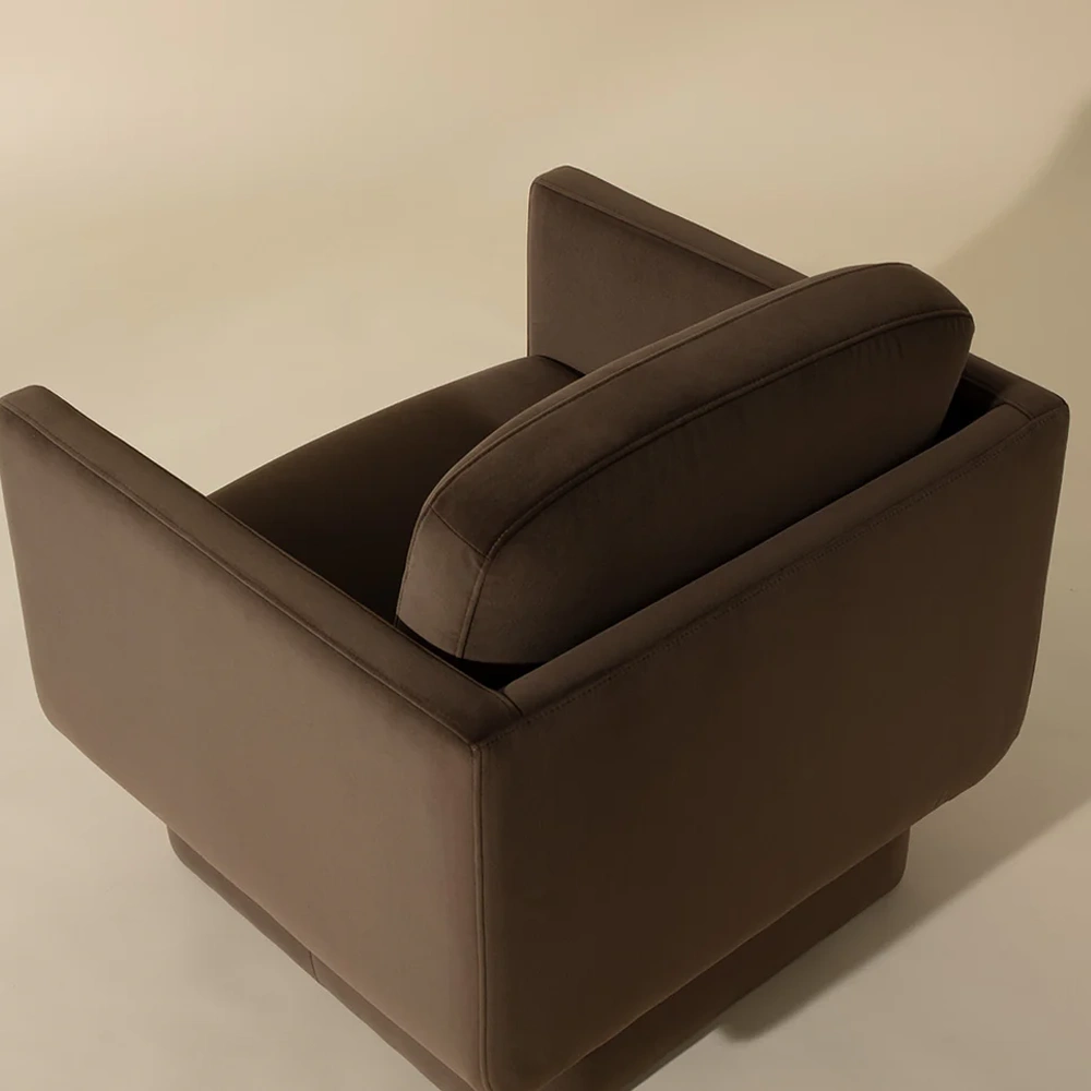 A study in balance and proportion, the Elston Lounge Chair merges sculptural form with everyday ease. Its signature U-shaped arms soften the silhouette, while the squared base creates a subtle floating effect. Upholstered in smooth Meg Taupe fabric, Elston Lounge Chair offers a tactile experience that’s both inviting and elevated