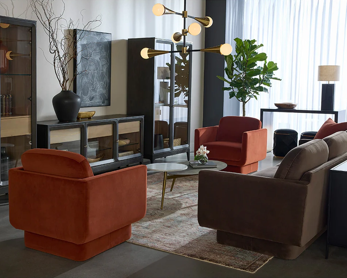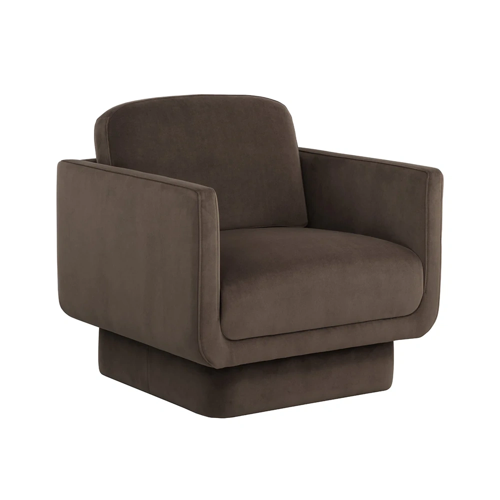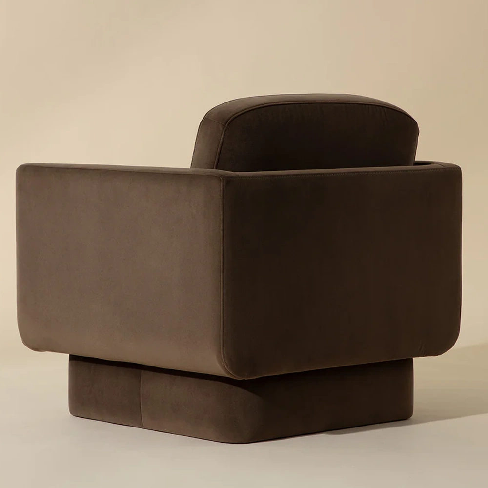 A study in balance and proportion, the Elston Lounge Chair merges sculptural form with everyday ease. Its signature U-shaped arms soften the silhouette, while the squared base creates a subtle floating effect. Upholstered in smooth Meg Taupe fabric, Elston Lounge Chair offers a tactile experience that’s both inviting and elevated