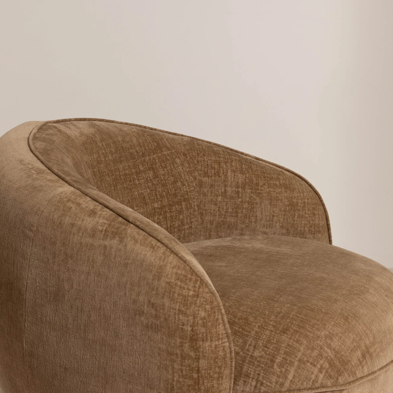 An elegant fusion of sophistication and comfort, the Sable Curve Lounge Chair invites indulgent moments with a favorite vintage or captivating read. Its design harmonizes minimalist aesthetics with graceful contours and subtle silhouettes, creating a timeless presence in any space. Built on a sturdy wooden base, the chair features premium foam cushioning wrapped in sumptuous caramel velvet—offering a tactile richness that matches its visual charm. A celebration of enduring craftsmanship, thoughtfully designed for distinguished relaxation.