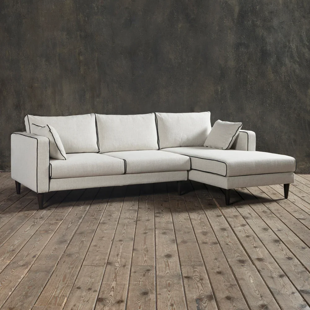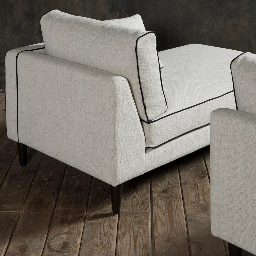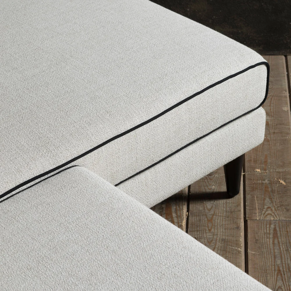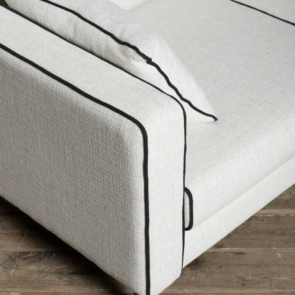 Introducing the Sofa Blanc, a serene statement of modern luxury. Inspired by the purity of minimalist design and the sophistication of French interiors, this designer sofa features crisp lines, bold contrast piping, and a sculptural silhouette that elevates any space.