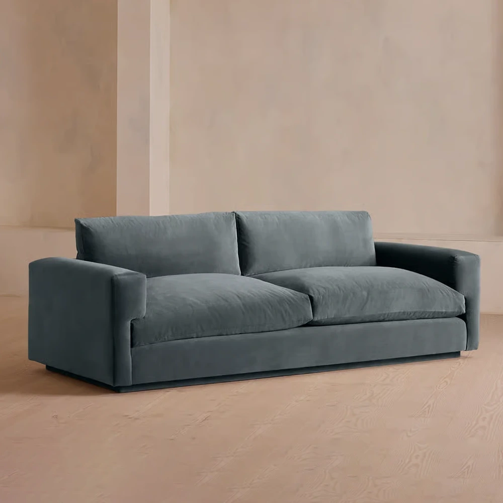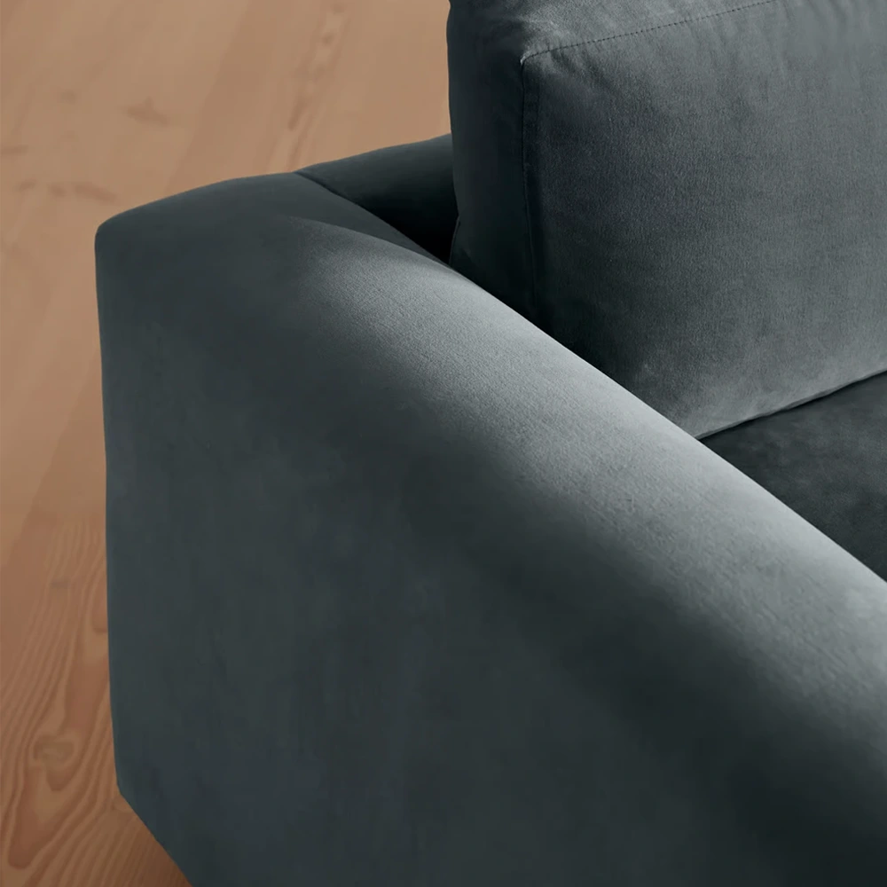 Inspired by the effortless charm of Rome Sofa , the Roma Lounge Sofa invites you to sink into its generous proportions and Micro Fiber & Feather -wrapped comfort. With a deep seat and low-rise backrest, it’s designed for laid back living—whether you’re hosting or unwinding solo. Fully upholstered in rich velvet across a palette of bespoke shades, its clean silhouette and oak feet add a grounded, architectural touch to any space.