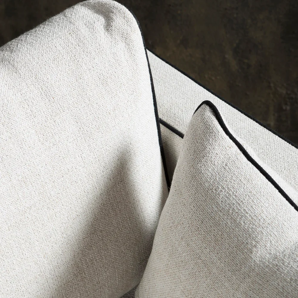 Built with a robust internal frame and high-performance upholstery, Sofa Blanc is designed to last. The elegant contrast trim adds visual impact, while curated colorways and custom upholstery options allow you to tailor it to your space. Slightly elevated legs enhance its sculptural presence, giving the sofa a light, floating effect.