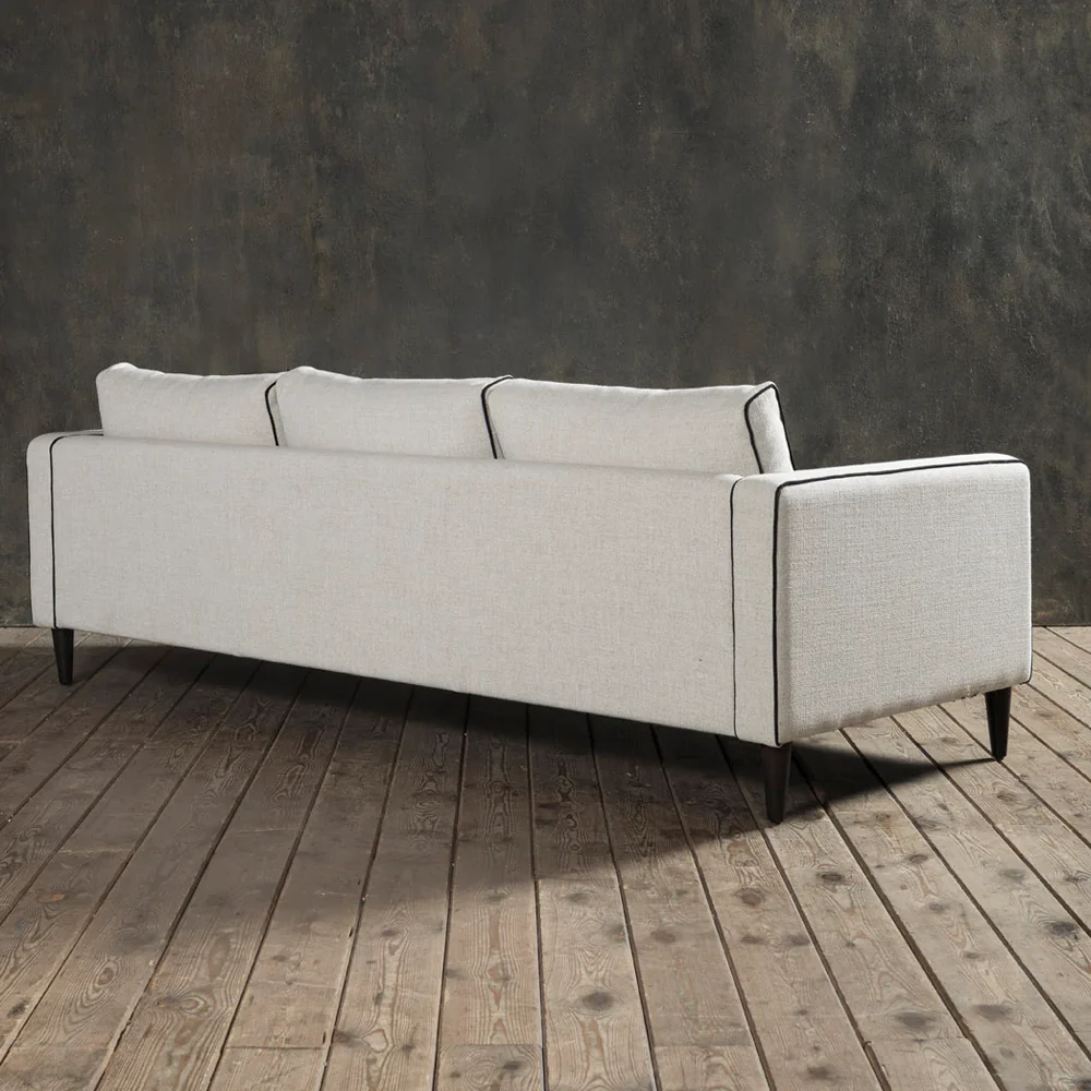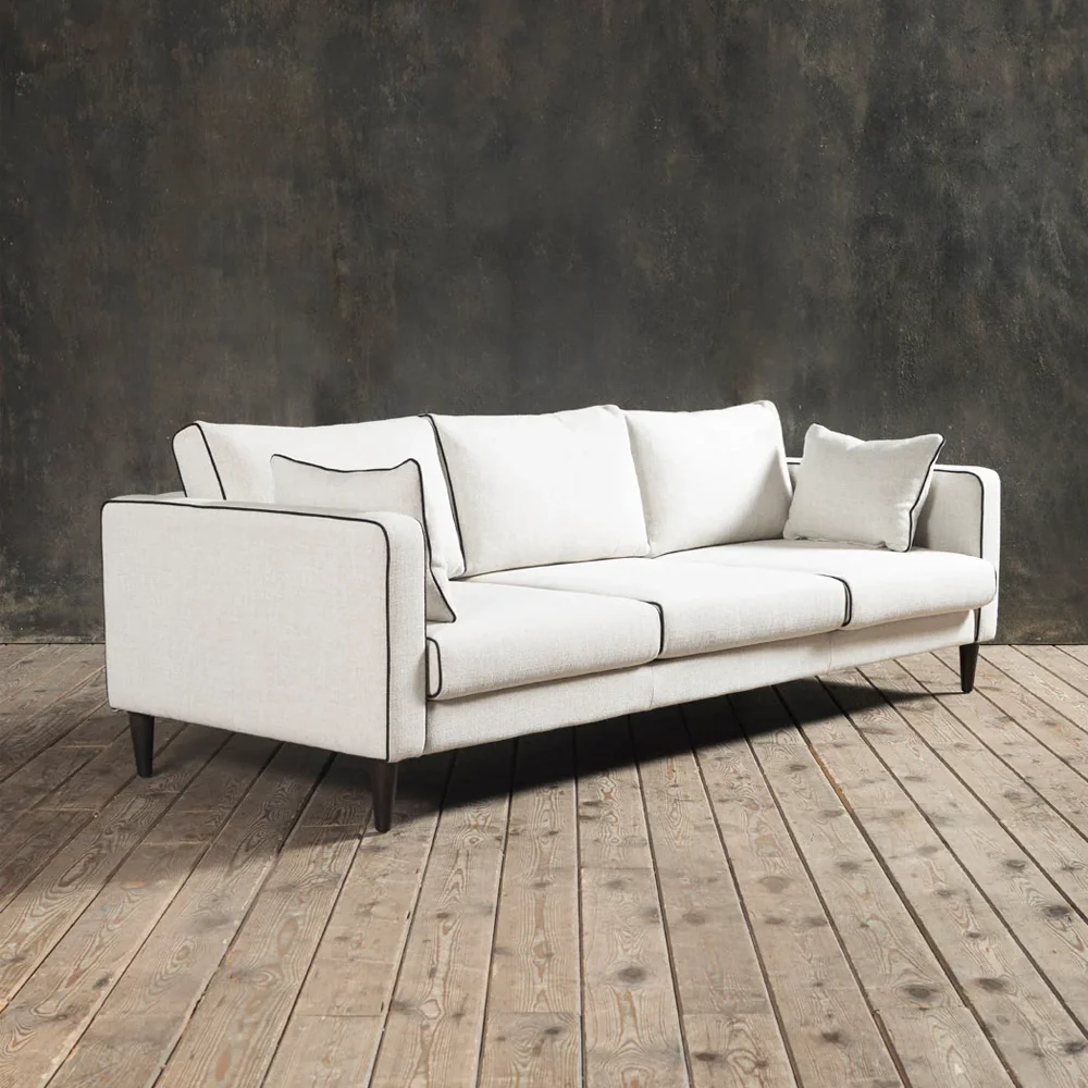 The Sofa Blanc is a serene statement of modern luxury. Inspired by the purity of minimalist design and the sophistication of French interiors, this 3-seater designer sofa features crisp lines, bold contrast piping, and a sculptural silhouette that elevates any space. Its clean form and tailored details make it a versatile centerpiece for refined living rooms, boutique hotels, and curated apartments.