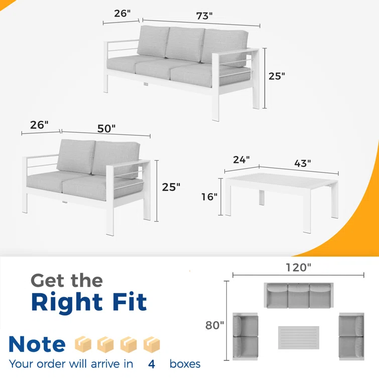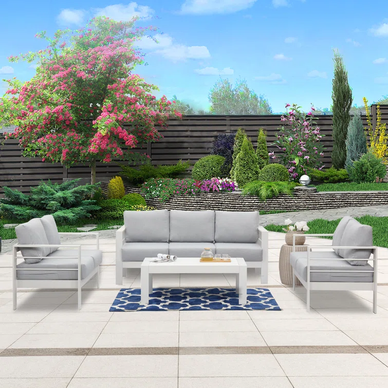 Creating a relaxing outdoor space with this comfortable and stylish patio 4-piece sectional seating group. All-weather polyester fabric cushion cover keeps outdoor furniture clean, dry, and ready to use. It is very suitable for poolside, garden, deck, or patio.